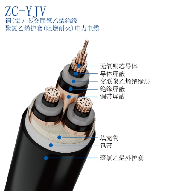 字母含义:YJ:交联聚乙烯绝缘;V:聚氯乙烯护套;L:铝导体(铜导体省略)